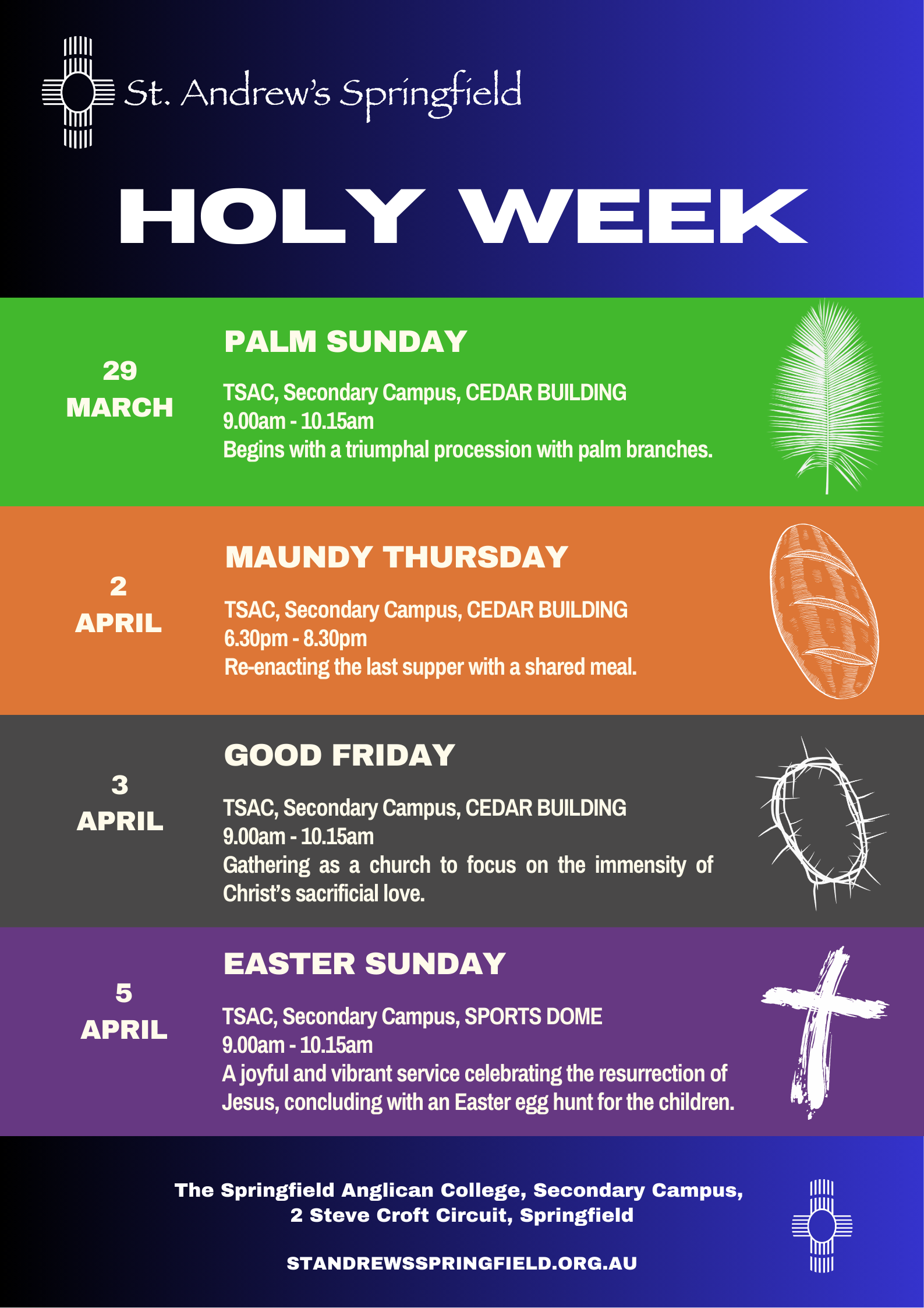 Holy Week is an opportunity to connect with the most important sequence of events in human history. Namely, Jesus’ triumphal entry into Jerusalem, The Last Supper, Jesus’ arrest, trial and crucifixion, and most importantly His resurrection.